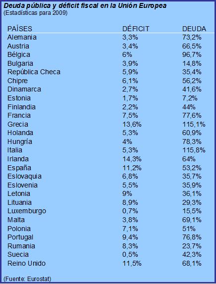 El tema inflacionario no es hoy mayor problema dentro del contexto recesivo que impera en toda la eurozona. Las tasas de interés ya están unificadas por el Banco Central Europeo y el tema cambiario perdió vigencia tras la introducción del euro. Las variables que se mantienen dentro de las competencias nacionales, déficit fiscal y deuda básicamente, son las que se han salido de control en la mayoría de los casos (ver tabla). Una crisis que se desencadenó con la debacle de Wall Street pero que encontró en Europa burbujas y carencias regulatorias autóctonas que le permitieron avanzar en una segunda fase de impacto global. En lo local, lo que se está expresando es ni más ni menos que un punto de ruptura, hasta ahora sin solución, en la forzada convivencia entre la ambiciosa construcción de un mercado continental unificado y una lógica política que no sale aún de sus marcos nacionales. Mercado trasnacional, políticas nacionales. Ésa es la cuestión.