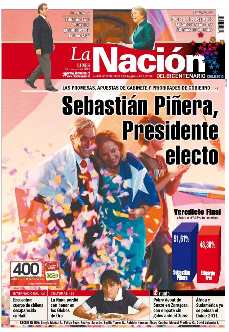 Chile tiene, entre otras, una curiosidad que no se da en casi ningún otro país: la existencia de un diario estatal de buena tirada. Se trata de La Nación, que en los años de gobierno de la Concertación equilibraba un panorama de medios gráficos hegemonizado por visiones conservadoras.