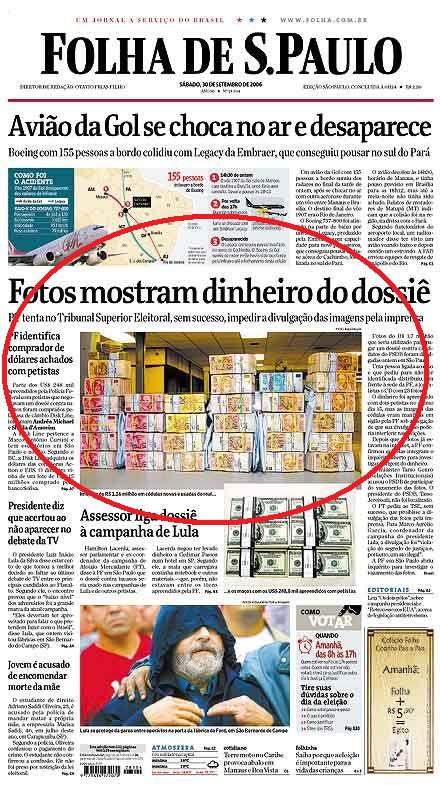 Las balas picaron tan cerca del propio Lula da Silva que pareció abrirse por un momento una contienda que parecía definida antes de su comienzo. Además, los diarios más influyentes del país publicaron en sus portadas el día previo a la votación el impresionante paquete del equivalente en reales a u$s 800.000 que iban a ser usados en la frustrada operación (ver imagen). El impacto fue inmenso.