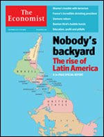 Mientras, el gran órgano de prensa de liberalismo mundial, la revista The Economist, publicó en su última portada un mapa de América con el sur hacia arriba, junto al título: «El patio trasero de nadie. El ascenso de América Latina».