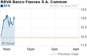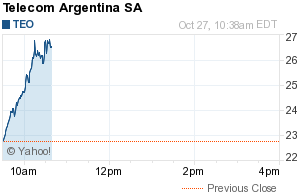 La cotización de acciones de empresas argentinas en la mañana de Nueva York se vio sacudida por la noticia de la muerte de Néstor Kirchner. Sorprendentemente (¿sorprendentemente?), se pueden constatar avances del orden del 10% para los bancos y de más del 15% para papeles de telefónicas.