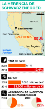 Son los precios que pagan los californianos por haber votado a Arnold Schwarzenegger. «Termitator», que supo tener índices de aprobación del 60%, se va con un rechazo del 60%.