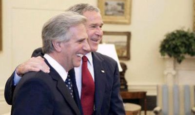 Aunque hombre de recurso fácil a las armas, parece que el delirio guerrerista de Tabaré Vázquez fue demasiado hasta para George W. Bush. Según el uruguayo, su pedido de protección a Estados Unidos hizo que el norteamericano despejara todas las ansias bélicas de la Argentina al declarar que “Uruguay es un país amigo y socio”. Notable moderación la del texano para responder a una amenaza tan grave. Poco serio.