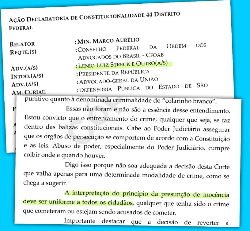 En rigor, continúa, “cuando presentamos la ADC 44, el caso de Lula no estaba ni siquiera en consideración. Luchamos por la libertad y por el respeto a la Constitución”.