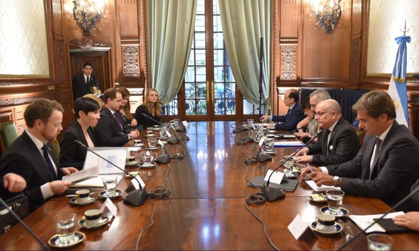 El trabajo técnico había sido puesto en marcha el lunes por los cancilleres, Jorge Faurie e Ine Eriksen Soreide, y por el ministro de Comercio, Industria y Pesca noruego, Torbjorn Roe Isaksen. Los temas que trataron fueron la Presidencia argentina del Grupo de los 20, el respaldo noruego a la candidatura de nuestro país a la OCDE, las negociaciones de libre comercio entre el MERCOSUR y el EFTA (el Acuerdo Europeo de Libre Comercio, alternativo a la Unión Europea y que une a ese país con Suiza, Islandia y Liechtenstein) y la marcha de las inversiones en la Argentina.