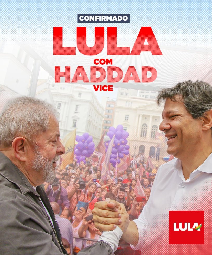 El PT anunció el domingo a la noche la fórmula Lula da Silva-Fernando Haddad. Así las cosas, es factible que este termine siendo el candidato de la izquierda si Lula, como se espera, queda fuera de carrera.