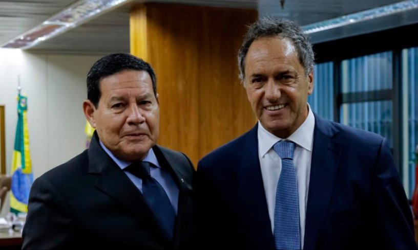 Vicepresidente de Brasil, Hamilton Mourão, y Daniel Scioli,futuro embajador.