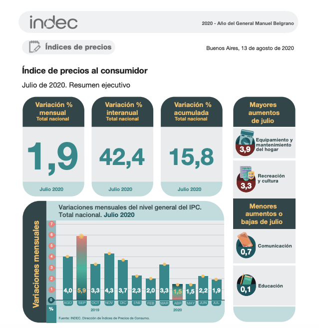 En relación con el problema de los ingresos insuficientes de los trabajadores, mencionado más arriba, CAME dijo que “el 72,6% de las pymes empleadoras encuestadas indicaron haber podido pagar en tiempo y forma los salarios correspondientes a junio y, entre estas, casi un 40% lo hizo con diferentes tipos de asistencias (Programa ATP, Línea al 24% u otras). Complementariamente, el 27,4% manifestó que le fue imposible hacer frente a dicha obligación (dentro de este subconjunto, el 79,3% manifiesta tener esta problemática desde la irrupción de la pandemia), mientras que un 28,6% aseguró que debió desvincular o suspender personal a raíz de la coyuntura”.