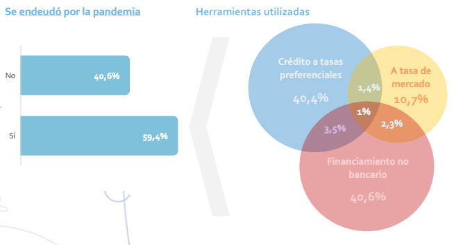 “Por otra parte, el 46% de las empresas indicó no estar en condiciones de hacer frente a las deudas contraídas en los plazos originalmente acordados. Incluso, alrededor del 62% de ellas estiman que, independientemente de las condiciones de acceso a los créditos que tomaron, les demandará más de un año poder desendeudarse”, explicó.