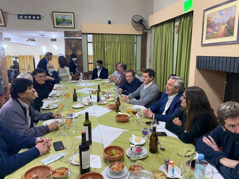 La secuencia es conocida. Tras viajar a La Paz para asistir a la toma de posesión de Arce y su vice, David Choquehuanca, el jefe de Estado compartió una cena para festejar el regreso a Bolivia del presidente depuesto hace un año. La misma se desarrolló en La Quiaca, Jujuy, “y, según se puede ver en la imagen que tuiteó el propio Morales, (participaron) 15 personas sin distanciamiento social ni tapabocas en un lugar cerrado, algo que está prohibido por el DNU N° 814/2020 dictado el 25 de octubre de 2020 y que lleva la firma del propio presidente”, dijo Chequeado.