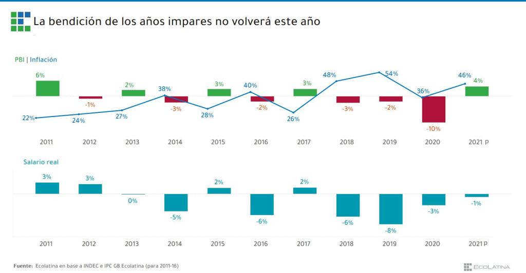 “La bendición de los años impares parecería llegar más por el lado del viento de cola externo que por la política económica: corresponderá esperar para saber si los crecientes contagios de la segunda ola de COVID frenarán la recuperación”, agregó.