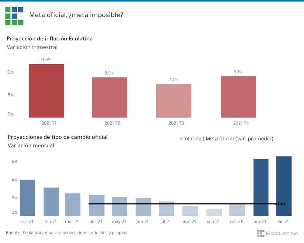 Así las cosas, el trimestre rondaría el 12% y la pauta oficial del 29 al 33% que consta en el Presupuesto 2021 luciría inviable.