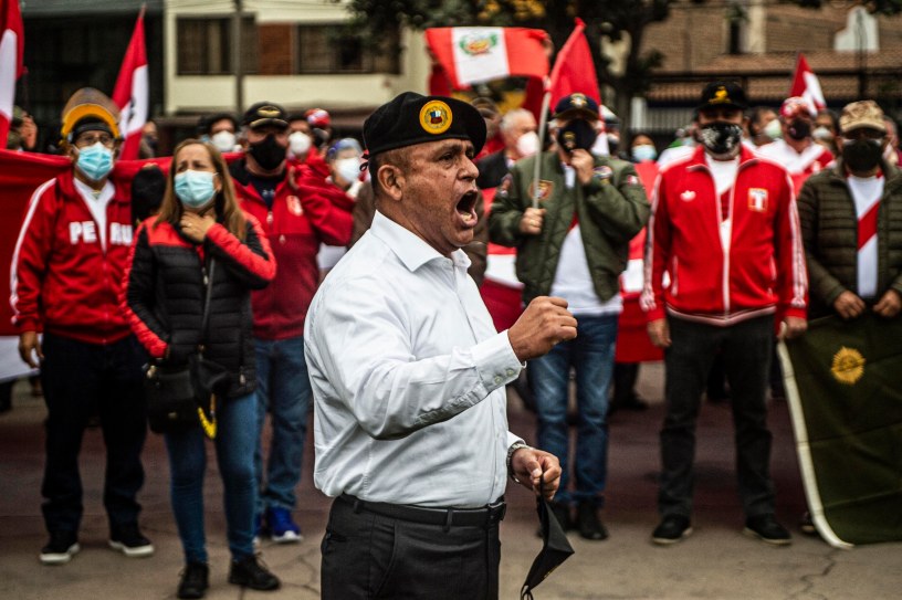 En tanto, sectores de las Fuerzas Armadas salieron a poner más sal y pimienta a ese caldo espeso cuando cientos de oficiales retirados se juntaron el martes a la noche en una plaza de Lima, algunos incluso con uniforme. Exigían la revisión de todas las impugnaciones y protestaban por un fraude a favor del izquierdista, uno que sería el más curioso de la historia por tratarse del candidato que no quería ver vencedor ningún factor de poder… salvo la mayoría de los peruanos que lo votó.