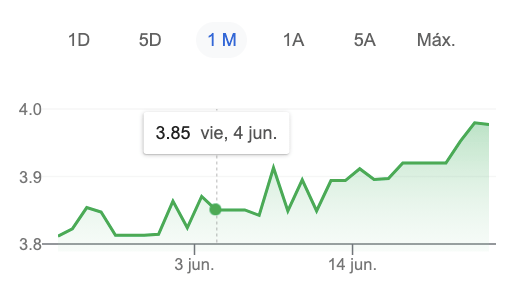 En el mercado cambiario, el sol aguantó mejor la tempestad, lo que limitó la suba del dólar a un 3,37% en el período mencionado, algo posible en virtud de una fortísima venta de billetes verdes por parte del Banco Central de Reserva del Perú.