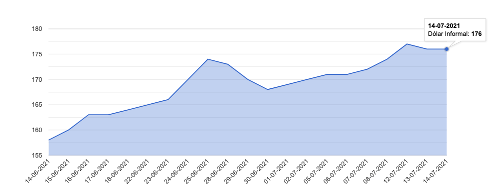 En el último mes, el blue saltó desde 158 pesos a 179 intradiario, para ceder el martes hasta 176, cotización en la que operaba en la apertura de este lunes.