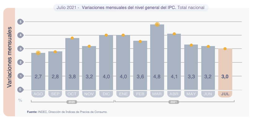 El INDEC dio su veredicto para julio: 3%. Meta anual consumida, incluso al precio de planchar dólar y tarifas. Emisión y después. El desafío en la pospandemia.