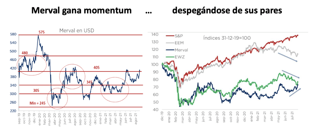 De acuerdo con dicho informe, las interpretaciones más comunes de esa racha pasan por la supuesta cercanía de un acuerdo con el FMI y por las especulaciones acerca de un revés electoral del oficialismo que permita avizorar un cambio de rumbo en la presidencial de 2023. La consultora descree, en diferente medida, de esos análisis: el primer supuesto driver le parece basado en rumores y directamente inadecuado y el segundo, débil o limitado al corto plazo, dados los ciclos accionarios positivos precedentes –y despegados de lo electoral– de este mismo año. En cambio, señala que lo decisivo pasa por las expectativas sobre el tipo de acuerdo que terminará por cerrarse con el Fondo.