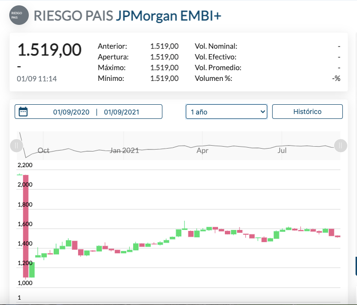 En efecto, un índice de riesgo del orden de los 1.500 puntos básicos indica que el Tesoro Nacional podría colocar o refinanciar deuda en el mercado internacional con una tasa en dólares de 15 puntos porcentuales por encima del rendimiento de los bonos estadounidenses. La hipótesis es un imposible total que, si se llevara a la práctica, dejaría en evidencia que el país sigue al filo de la cesación de pagos tanto como antes de la renegociación llevada a cabo por el ministro Martín Guzmán.