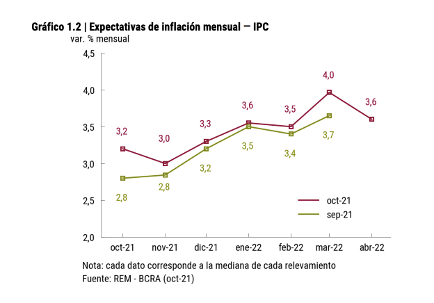 La proyección de Analytica coincide con la que quedó plasmada en la edición del mes pasado del Relevamiento de Expectativas de Mercado (REM), en la que el Banco Central recopila los pronósticos de los principales analistas privados. Según ellos, la inflación de octubre sería, precisamente, del 3,2%, algo que sugirió el propio Feletti el viernes último en Radio 10 al advertir que «el índice general no creo que esté debajo del 3%. Hasta la tercera semana de octubre tuvimos dispersión de precios».