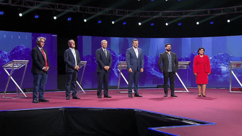 Participaron del debate los candidatos y candidatas Gabriel Boric –de la alianza de izquierda Apruebo Dignidad–, José Antonio Kast –pinochetista que representa al Partido Republicano–, Yasna Provoste –una democristiana del Nuevo Pacto Social, la ex-Concertación–, Sebastián Sichel –un hombre socialmente liberal que encabeza la coalición piñerista Chile Podemos Más–, Marco Enríquez-Ominami –Partido Progresista– y Eduardo Artés –de la radical Unión Patriótica–. El encuentro fue un todos contra Kast, en el que Boric, Enríquez-Ominami y Provoste compitieron por mostrarse como el mejor rival posible de aquel y Sichel buscó destronarlo del favoritismo dentro de la derecha para pasar a la segunda vuelta del 19 de diciembre.