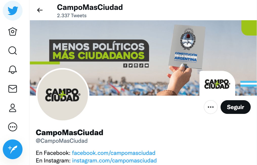En su panfleto de convocatoria al tractorazo del #23A, CampoMásCiudad se autopercibe como «una agrupación de ciudadanos apartidaria e independiente», lo que no impidió la adhesión de la Sociedad Rural Argentina (SRA) y de referentes –halcones y palomas sin distinción– del PRO y de otros sectores de Juntos por el Cambio. De acuerdo con el texto, la organización se propone «exigir el cumplimiento de los principios republicanos fundamentales», «defender la propiedad privada», «oponerse a toda transferencia de recursos que postergue el desarrollo de las regiones» y «promover la lucha contra la impunidad», entre otros objetivos.