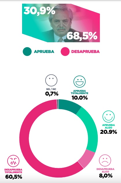 La agenda económica está, sobre todo cuando, superada la renegociación de los distintos tramos de la deuda pública, la puesta en marcha de la «fábrica de dólares» sube al tope de la agenda del acosado ministro Martín Guzmán, con foco en la extracción, transporte, industrialización y exportación del gas de Vaca Muerta. Sin embargo, este tipo de eventos suelen ser considerados por sus protagonistas como formas de sacarle lustre a placas de bronce que de pronto se han puesto opacas. La última encuesta de Zuban, Córdoba y Asociados (nacional, dos mil casos, realizada entre el 25 y el 27 de abril y con un margen de error de +/- 2,19 puntos porcentuales) indica que «el Gobierno nacional rompe nuevamente su récord de negatividad, llegando a un 68% de desaprobación de gestión. El dato se complementa con la sensación de que el país va en la dirección incorrecta, que ya llega a un alarmante 72%».
