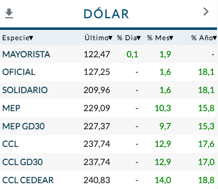 En tanto, los tipos de cambio negociados en bolsa se empinaron bruscamente el lunes, estirando la brecha con el oficial hasta casi el 80%.