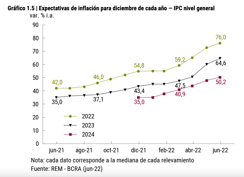 El Relevamiento de Expectativas de Mercado –REM, la encuesta entre analistas de referencia que realiza cada mes el Banco Central– arrojó en junio que la proyección de inflación saltó 3,44 puntos porcentuales hasta el 76% en promedio, pero que lo hizo 4,4 puntos hasta 79,2% entre los diez mejores pronosticadores de esa variable.