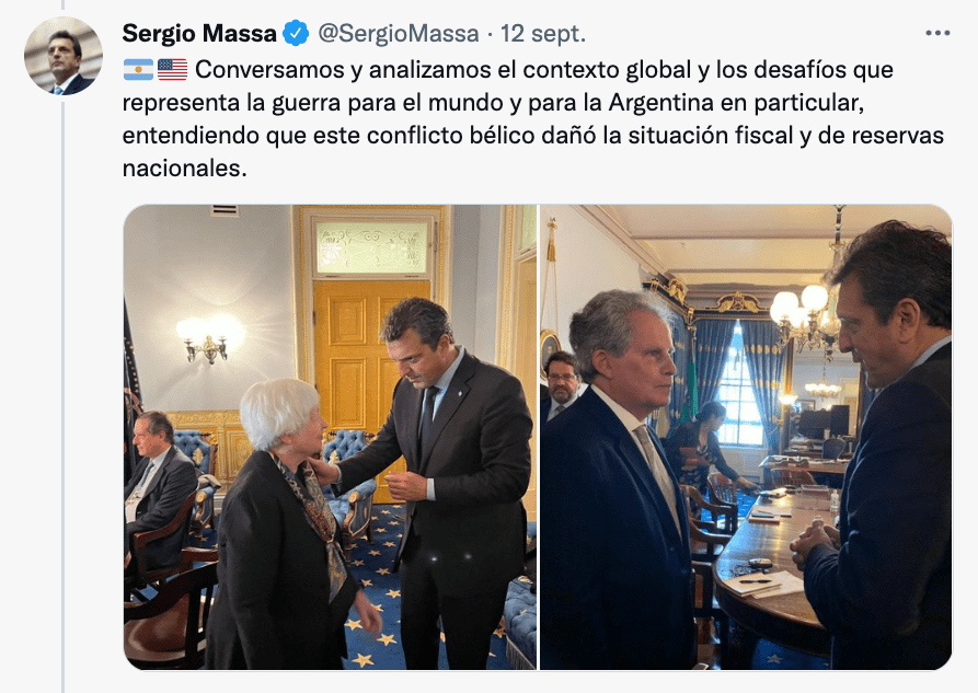 Días atrás, Massa había pasado por el Departamento de Estado y la Casa Blanca, donde conversó con el alto funcionariado concernido con América Latina. Asimismo, estuvo con ceos de grandes compañías y, en Houston, con responsables de empresas petroleras que decidirán inversiones cuando encuentren condiciones para repatriar las ganancias que generen.