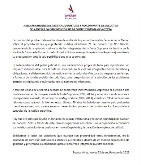 Nado sincronizado: sin sorpresas, también lo hizo la Cámara de Comercio de los Estados Unidos en Argentina (Amcham).