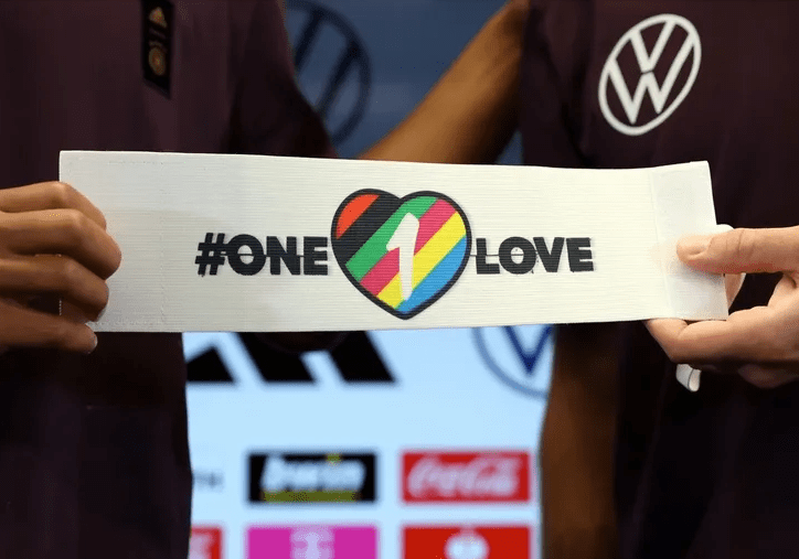 El récord deplorable del país organizador de la Copa del Mundo en materia de trato a las personas homosexuales motivó a siete federaciones europeas –Alemania, Francia, Inglaterra, Bélgica, Suiza, Dinamarca y Gales– a plantear la iniciativa de que los capitanes de sus equipos llevaran los brazaletes one love –»un amor» o “único amor»–, con un número uno estampado sobre los colores del arcoíris.