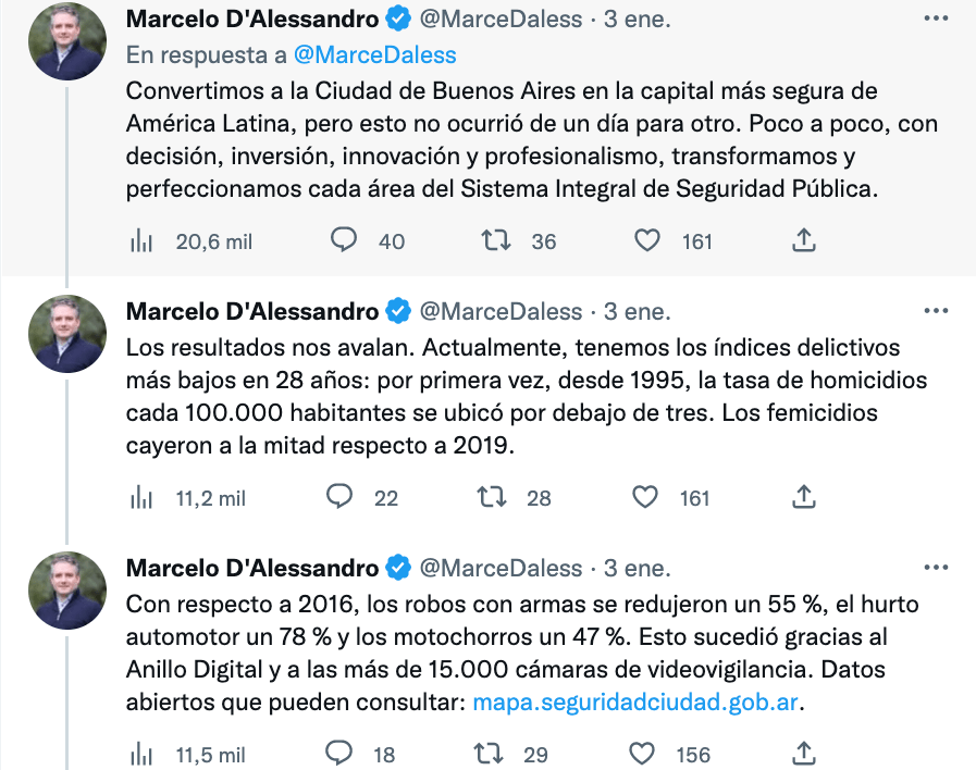 La sociedad porteña aprecia vivir en una ciudad que registra niveles de seguridad positivos en comparación con otras capitales. ¿Que la Ciudad es rica y permite trabajar en seguridad? Seguramente. ¿Que otro tipo de delitos se repiten con mayor frecuencia que la deseable? También. ¿Que no hay éxito que justifique que policías y patrulleros anden por ahí sin identificación, dándose a «tareas de inteligencia» que no queda claro en qué consisten y que, por ejemplo, en el caso de Lucas González terminaron en un asesinato? Desde ya.