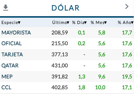 l dólar «contado con liquidación», la principal referencia cambiaria paralela, superó los 400 pesos y el Banco Central vendió 76 millones de dólares más, ratificando una tendencia muy preocupante de su reservas.