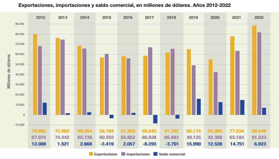 Lo ideal habría sido no tener que recurrir a ningún «manejo», sino que una macroeconomía sana y competitiva hubiese permitido exportar e importar libremente, acumulando saldos positivos que alimentaran las arcas del Banco Central. Se sabe que eso no es lo que ocurrió. Así, entre 2020 y 2022, el superávit comercial acumuló unos 34.202 millones de dólares, pero no es más que eso lo que la autoridad monetaria tiene hoy como reservas brutas, mientras las consultoras privadas aseguran que las netas están virtualmente agotadas.