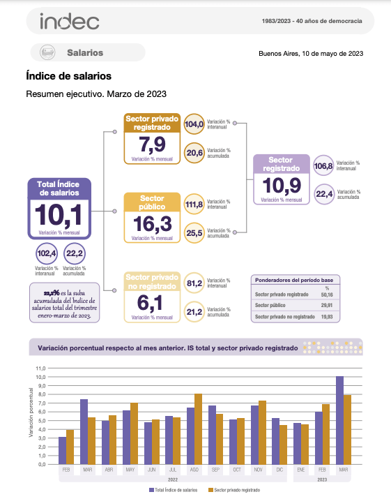 Por último, un poco de magia. El INDEC informó que los salarios le ganaron en marzo a la inflación por primera vez en el año: 10,1% contra 7,7%. El balance da levemente positivo también en el primer trimestre, pero no así en los 12 meses previos.