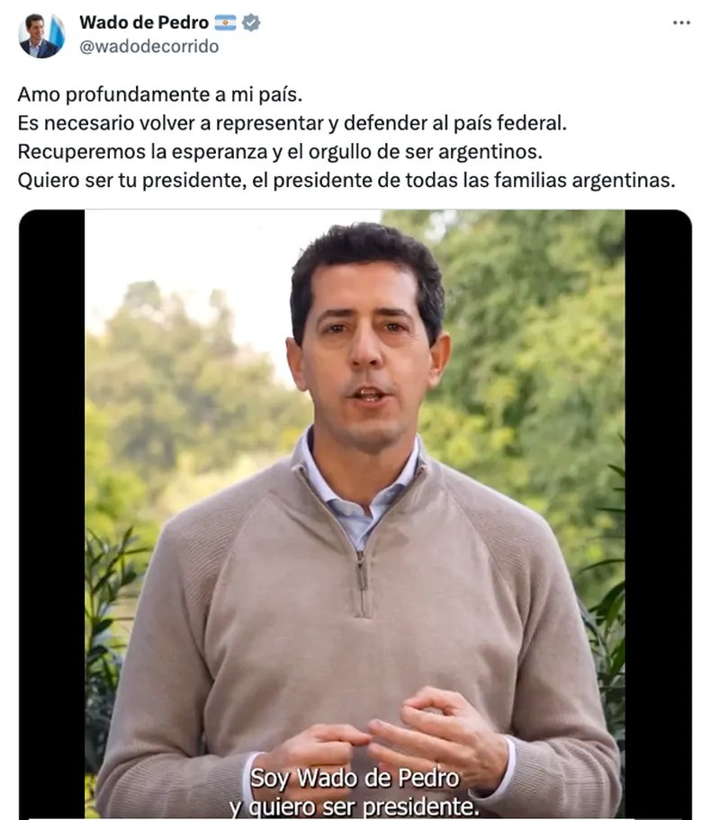 Tal como se rumoreaba y luego de una jornada de nervios, idas y vueltas, se conoció, no sin desprolijidades, la fórmula presidencial favorita dentro de la Unión por la Patria (UP): Eduardo Wado de Pedro y Juan Manzur. Después de largas horas de seudoconfirmaciones off the record y de seudodesmentidas que pusieron de manifiesto tironeos severos, pero naturales entre las partes involucradas, la confirmación llegó a través de un video subido a las redes sociales por el propio ministro del Interior, uno en el que, sobre el final, se presenta: «Soy Wado de Pedro y quiero ser presidente». La instalación de su nombre, intensa en las últimas semanas, aún no ha dado todo lo que se espera, evidentemente.