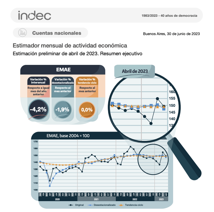 El Estimador Mensual de Actividad Económica (EMAE), anticipo de los datos de PBI, trajo malas nuevas en abril.