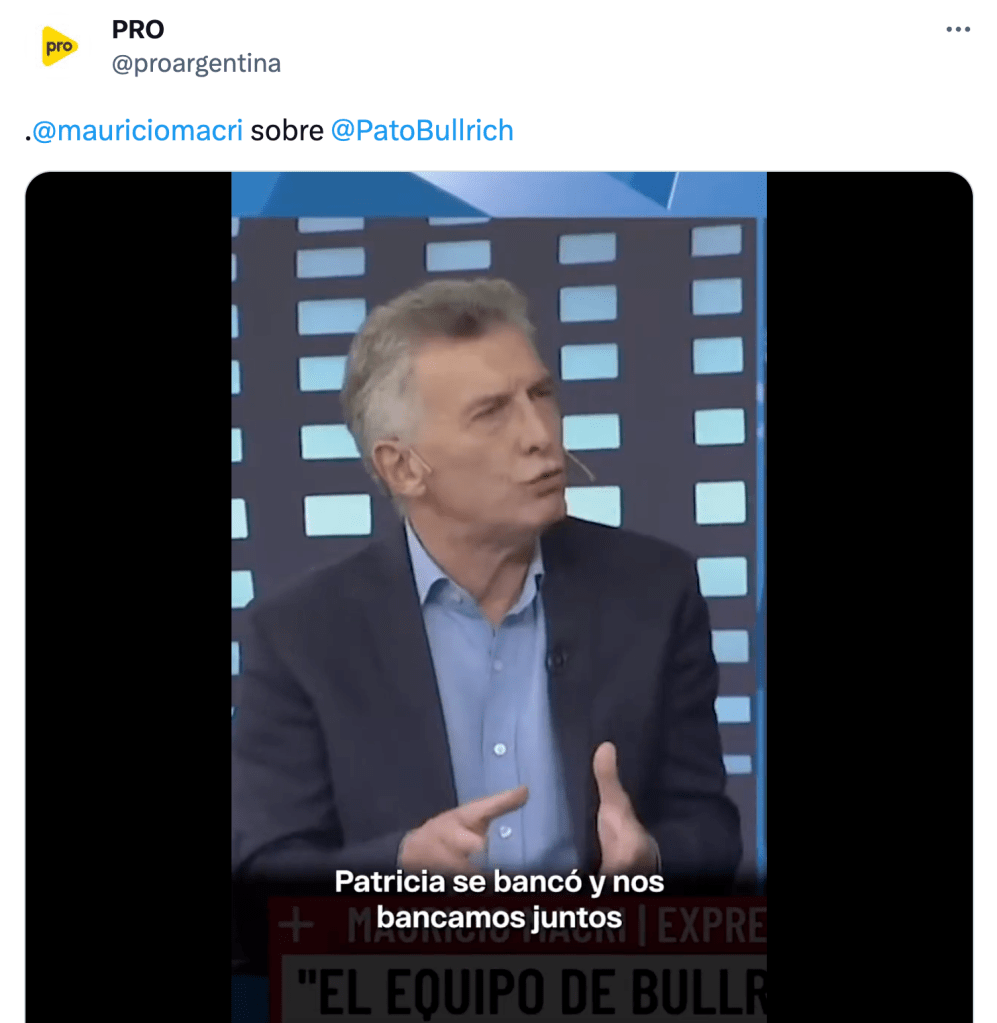 Otra que debió explicar fue la propia Bullrich. «Él es de Juntos por el Cambio y es del PRO», aseveró. Bueno… ¿Acaso alguien había sugerido otra cosa?