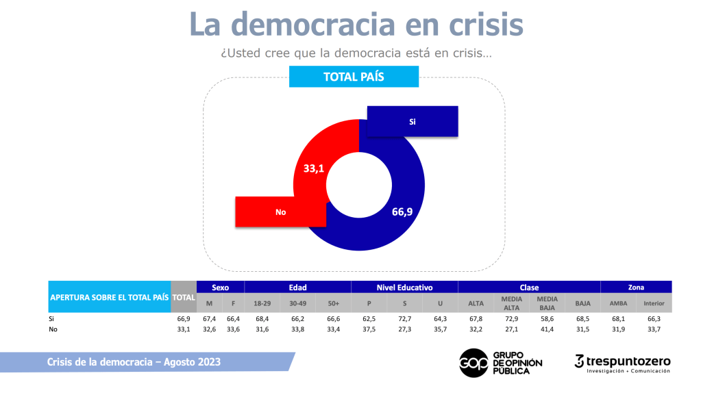 «La pérdida de adhesión a los valores democráticos es más intensa entre los jovenes que entre las personas de edad media o mayor. El fenómeno de la democracia va perdiendo espesor, nitidez y legitimidad cuando observamos a la parte más joven de la población«, remató la analista.