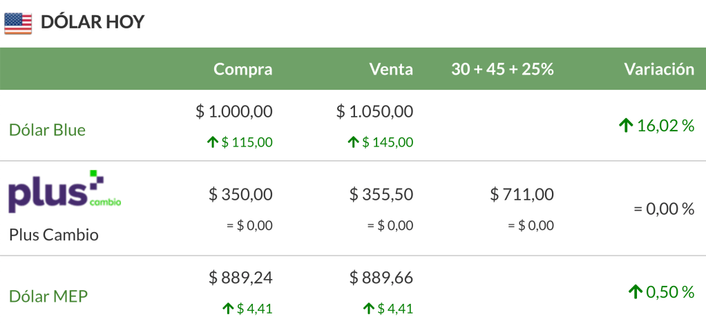 Esa tendencia se radicalizó este jueves. Las cuevas decían ser compradoras, pero no les aparecían clientes. A la vez, se negaban a vender. Los medios reflejan esa confusión, con uno u otro señalando que el billete finalizó en alza a 1.050 o a 1.065 pesos, mientras que otros dijeron que bajó hasta 900. Este medio no supo de ninguna operación concreta cerrada a semejante precio de ganga.