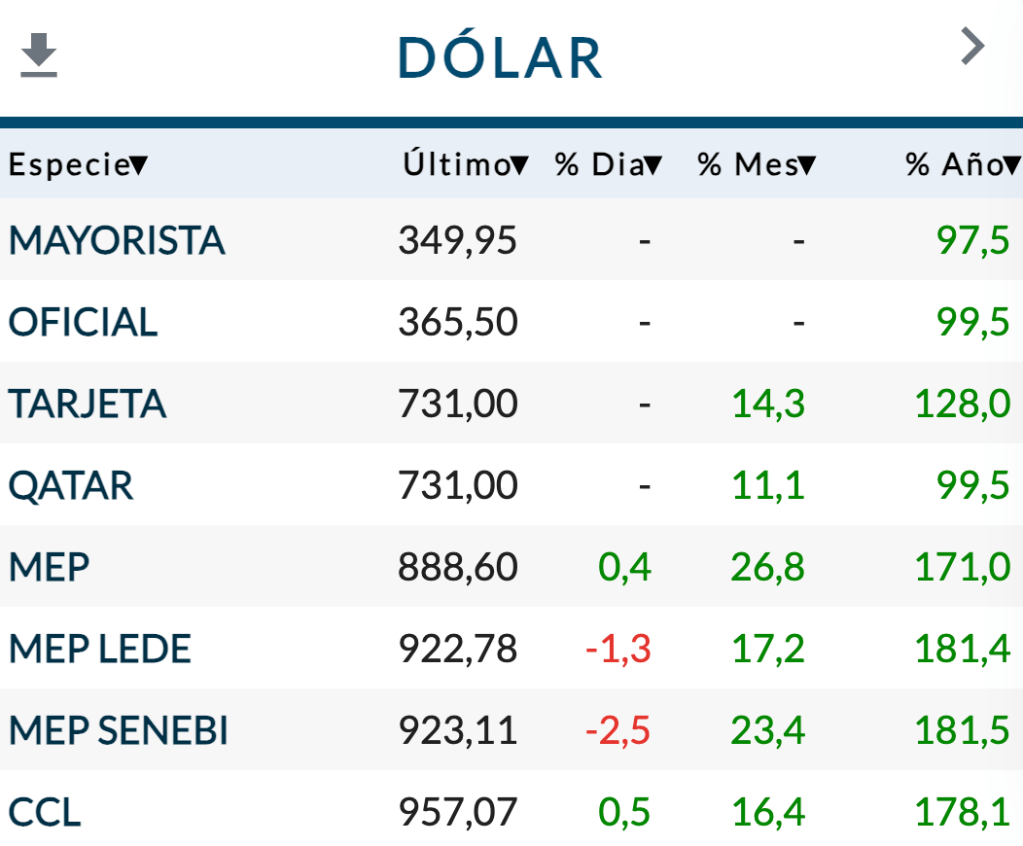 El oficial de 350 es una ficción, pero el Gobierno jura –al contrario de las cuentas que hace Carlos Melconian– que lo mantendrá clavado hasta el mes que viene para luego actualizarlo a razón del 3% mensual. Se verá… El blue, como se dijo, es un albur y acaso sea una referencia el «contado con liqui», el tipo de cambio que sirve para sacar divisas de manera legal del país, que en las últimas horas orilló los 960 pesos. Con todo, el 23-O pondrá a prueba todas las certezas.