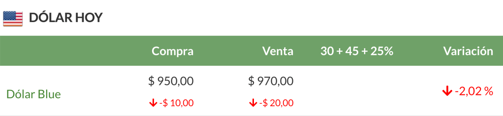 En tanto, entre los 1.250 pesos que llegó a tocar en aquellas ruedas candentes y los 970 del último cierre, el blue perdió 22,4%.