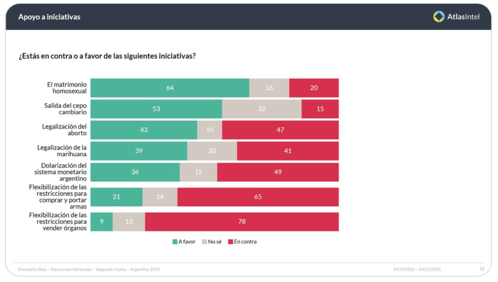 El segundo, por el contrario, indica un rechazo claro –49% a 36%– al plan estrella de Milei para organizar la economía, esto es la dolarización, así como a otras de sus ideas.