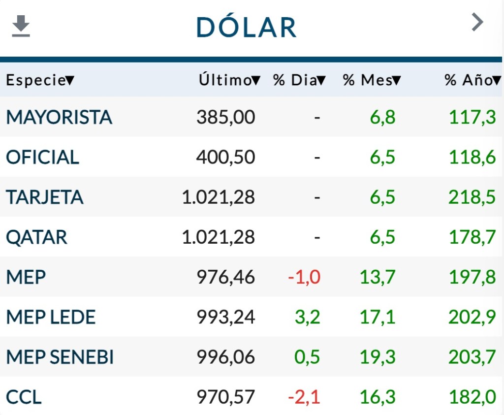 «No hay ninguna regla para fijar ese valor, sino solo la competencia en el mercado. Por ejemplo, el dólar solidario es el minorista más el impuesto correspondiente y su valor oscila en los diferentes bancos», añadió.