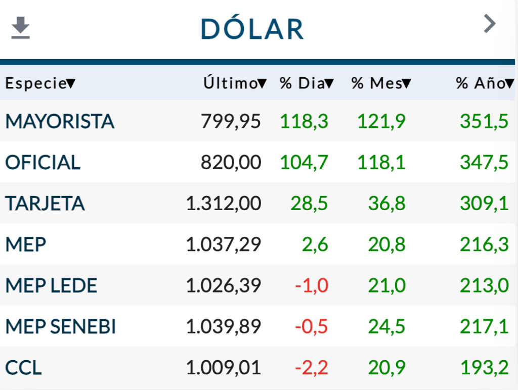 El dólar oficial de 800 pesos en el tramo mayorista redujo al 26% la brecha con el «contado con liquidación» –ahora libre–, pero hay que seguir su evolución. Según Caputo, se actualizará por un tiempo corto mediante minidevaluaciones –crawling peg– equivalentes a un 2% mensual, un virtual congelamiento en el contexto del fogonazo inflacionario que se gesta.