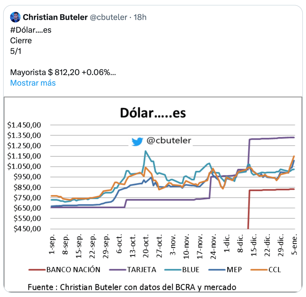 «Producto de la elevada inercia existente en el proceso inflacionario, la recomposición de múltiples precios relativos atrasados, la elevada incertidumbre reinante y la ausencia de un plan de estabilización, el dólar oficial subiendo 2% mensual no logrará bajar la inflación a un dígito a fin del primer trimestre, pero producirá un nocivo atraso cambiario y mayor brecha», añade.