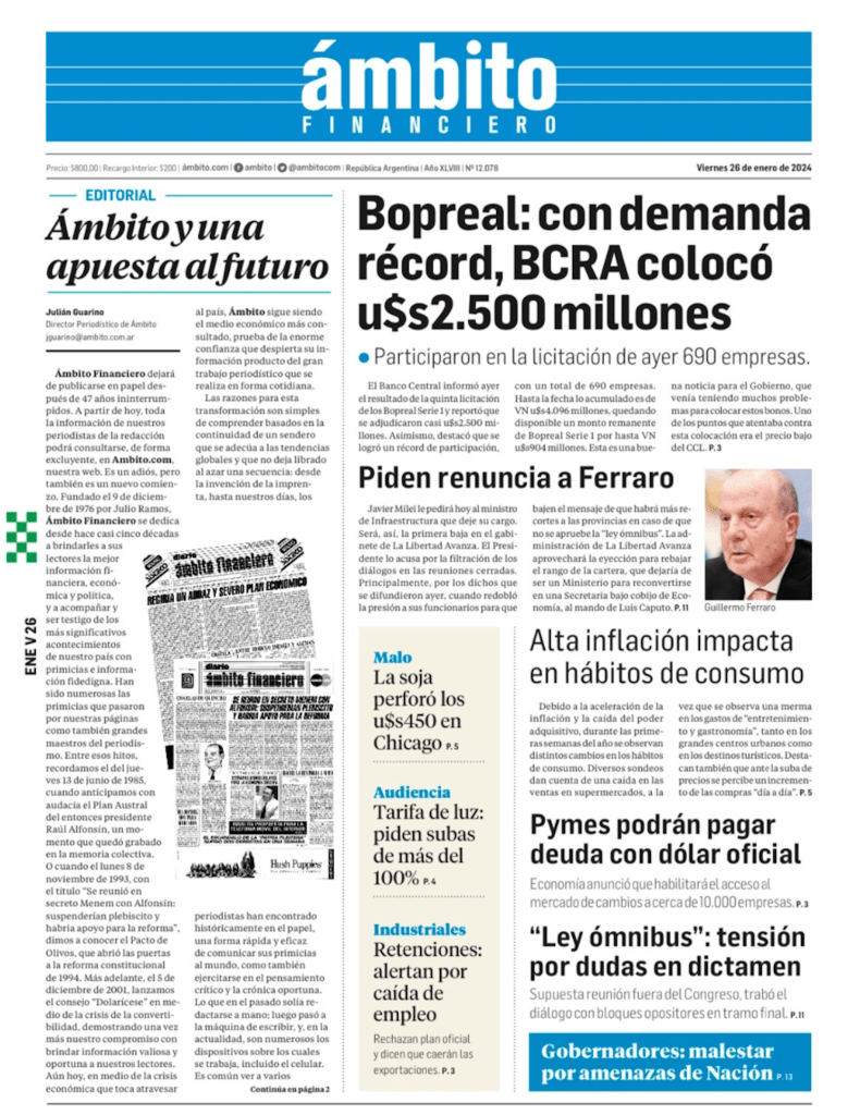 El tiempo, Internet, el avance tecnológico, la crisis del papel y la evolución de los hábitos de lectura le ponen fin a una parte de la aventura de Ámbito Financiero. Solo a una parte.