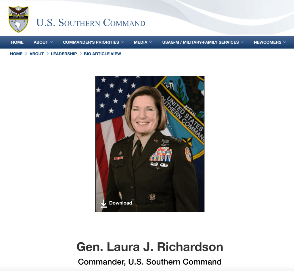 La generala es la comandante del Comando Sur de los Estados Unidos, cuya misión, de acuerdo con su página de Internet, es «proporcionar planificación de contingencias, operaciones y cooperación en materia de seguridad en su área de responsabilidad asignada», que incluye a «Centroamérica, Sudamerica y el Caribe».