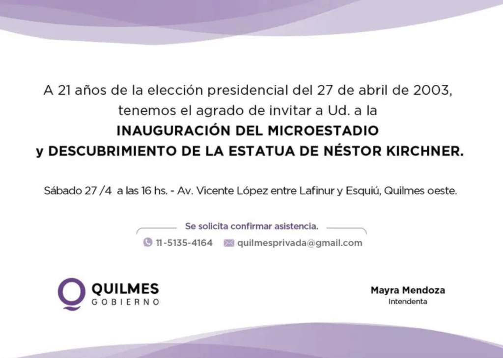 La expresidenta posteó en Twitter que decidió aceptar una invitación de la intendenta camporista de Quilmes, Mayra Mendoza, para inaugurar un microestadio. ¿Será casual que la anfitriona sea quien viene de ponerle mala cara en las fotos a Axel Kicillof en una reciente visita de ese gobernador? Se verá si CFK dice algo el sábado sobre esa interna cruel.