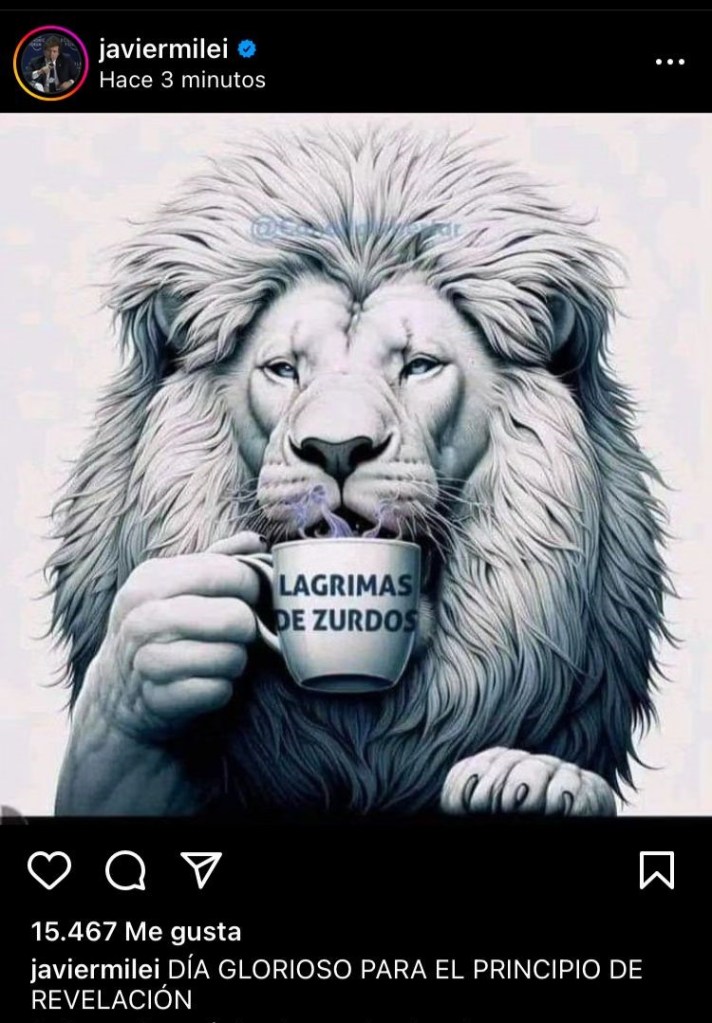 Milei vino para «terminar con el Estado presente»; dejar en pie uno que sólo garantice «la vida, la libertad y la propiedad de los individuos», esto es no la salud ni la educación; para terminar con «la perversión de la justicia social»; para distribuir el ingreso a lo Hood Robin, entronizar a una nueva clase de héroes y recortar a la mitad el gasto público. Así lo dijo Dios.